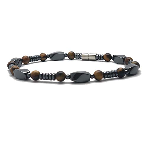 Accents Kingdom - سوار مغناطيس مصنوع من خرز عين النمر وحجر الدم للرجال اكسنتس كينجدوم حجر معدن الهيماتايت