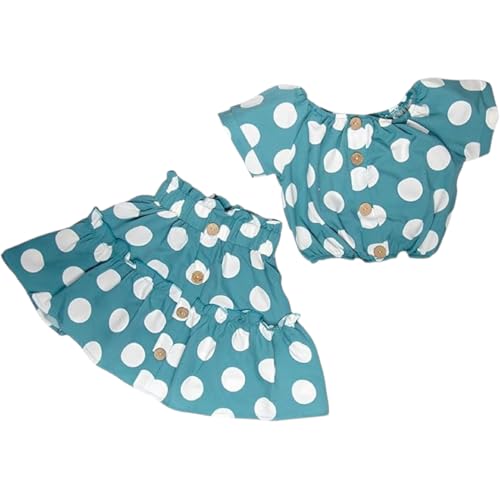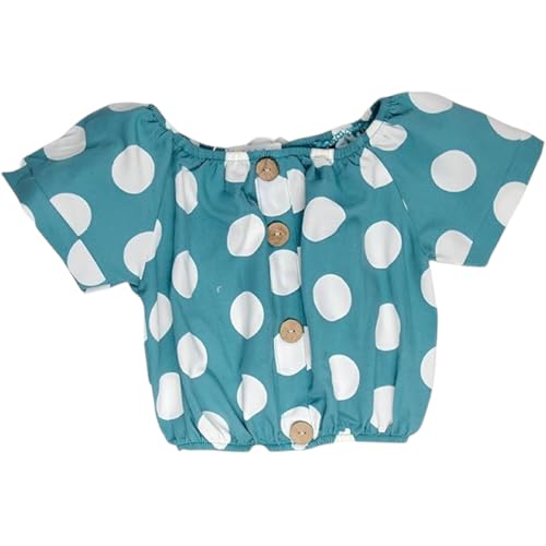 Access Kids - طقم ناعم من بلوزة قصيرة بطول منتصف البطن بنصف كم وجيبة مطبوعة منقطة للبنات من اكسيس كيدز، تركواز، مقاس 14 سنة