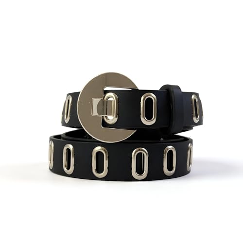 Generic - Accessories Belt - Edgy Faux Leather with Gold Grommets, Adjustable for Comfort, Round Metal Studs, Buckle Closure for Casual Daywear