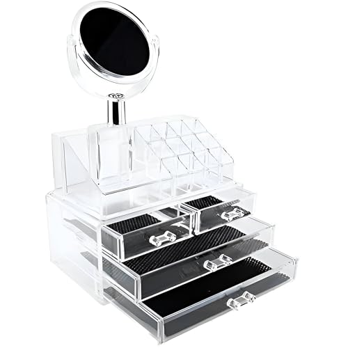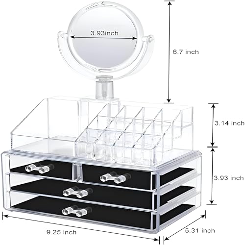Generic - Accessories Keeper - Large 4-Drawer Makeup Organizer with Mirror, Ideal for Storing All Beauty Essentials in One Stylish Unit, Easy to Access