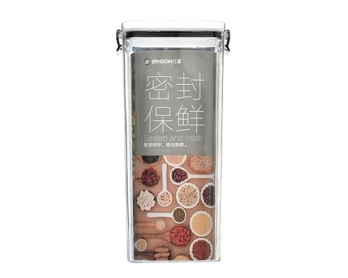 Generic - علبة حبوب عميقة مربعة من الاكريليك تحتوي على غطاء محكم الغلق بتصميم عصري ومواد عالية الجودة عملية للمطبخ، سعة 1700 مل، لون أسود شفاف