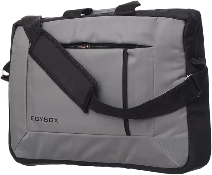 Generic - شنطة لاب توب ايجي بوكس ND2 كلاسيكية من القماش بسوستة وجيب أمامي وحزام كتف لحماية اللاب توب من اكسيسوريز شوب، أسود ورمادي