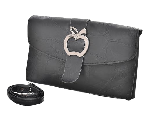 Generic - accessories shop Leather Medium Handbag Classic Design Shoulder Strap With Two Metal Zippers Divided Into Two Internally And Metal Clip For Women - Black