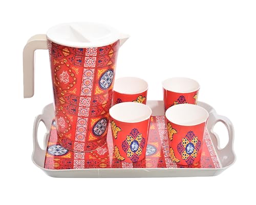 Generic - accessories shop Plastic Large Jug Ramadan Design With Plastic Large Tray And Three Plastic Cups - Red