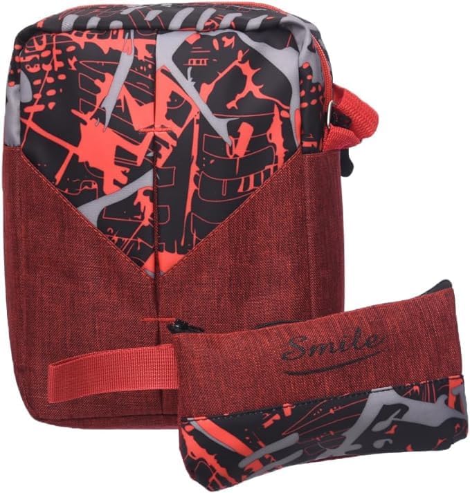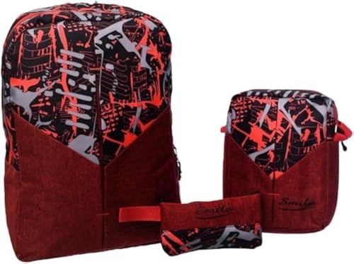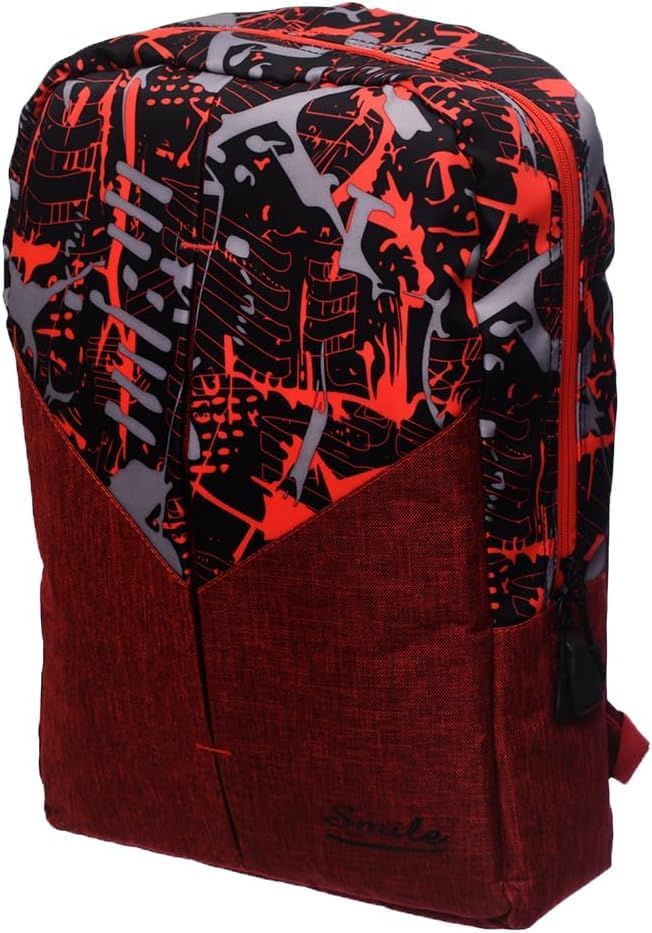 Generic - accessories shop Smile Fabric Large Zipper Laptop Backpack With Front Middle Pocket And Printed Design For Laptop Protection - Red Black