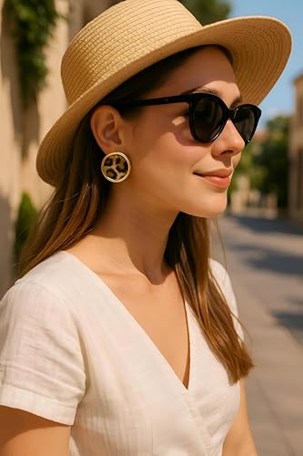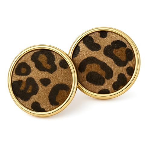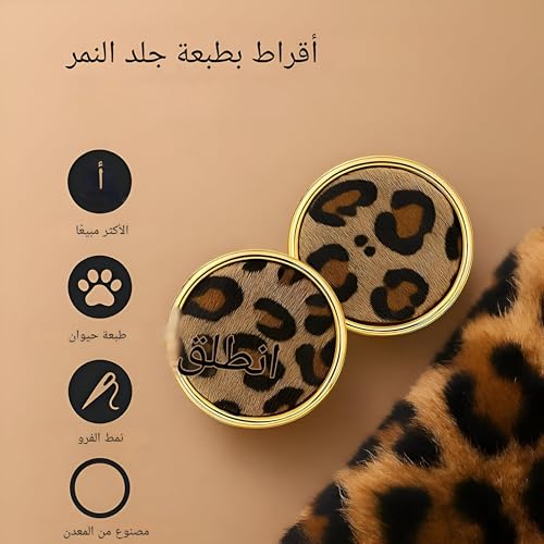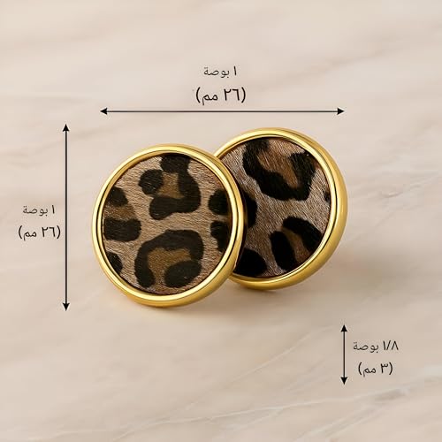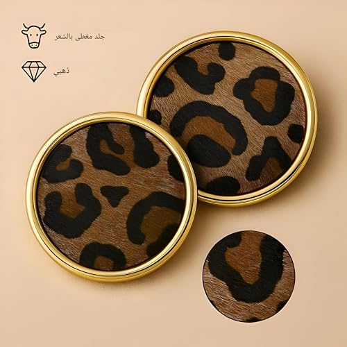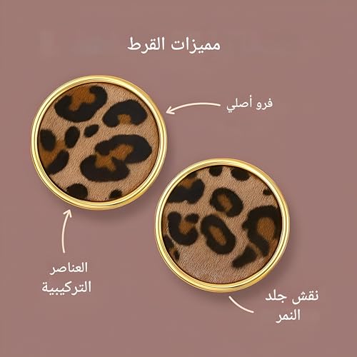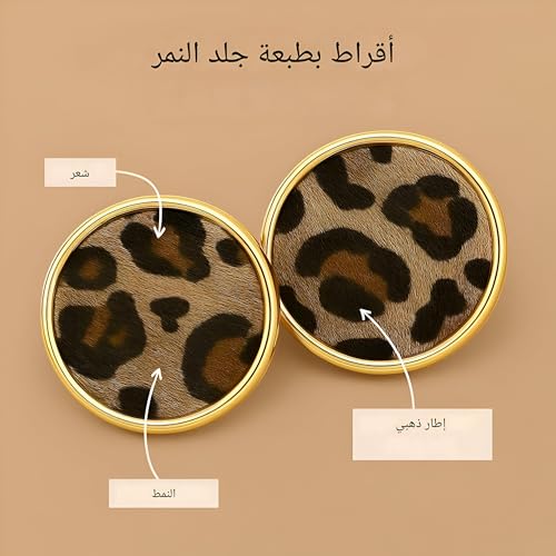 Generic - اكسسوار - اقراط بنمط جلد الفهد مع فرو اصلي وتفاصيل ذهبية اللون، دائرية 26 ملم لمظهر انيق