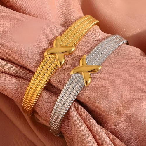 Generic - Accessory - Stylish Stainless Steel 18K Gold Plated X-Grain Buckle Bracelet for Women’s Versatility and Charm