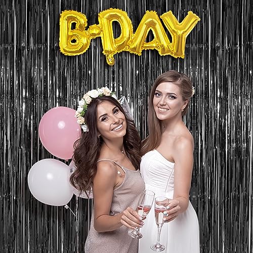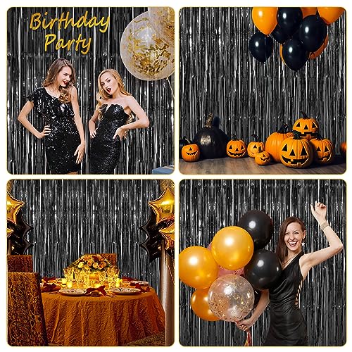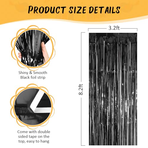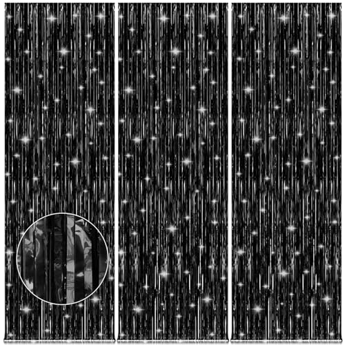 Accevo - ACCEVO 3 Pack Black Foil Fringe Backdrop Curtain Streamer Backdrop Curtains 3.2ft x 8.2ft Tinsel Backdrop Black Party Decorations Photo Booth Backdrops for Party Halloween Christmas Decorations