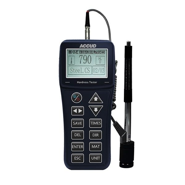 Accud - مقياس صلابة معدني محمول HL400 من اكيود، شاشة رقمية، مقياس اتش ال مع محول لمقاييس اتش في، اتش بي، اتش ار سي، 150 × 80 × 24 ملم، يتضمن الوحدة الرئيسية، كتلة اختبار، حلقة دعم وفرشاة