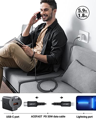ACEFAST - ACEFAST C4-01 - USB-C to Lightning Plug, MFI Certified, Fast Charging And Data Transmittion Cable (PD 30W - 3A - 1.8M), Aluminum Alloy, Compatbile With iPhone 13/12/ 11, iPad, Airpods - Black