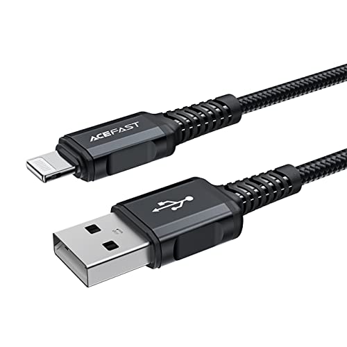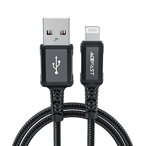 ACEFAST - كابل شحن سريع ونقل بيانات بمنفذ USB-A الى لايتنينج مصنوع من خليط الالومنيوم معتمد ابل لموبايل ايفون 13 - 12 - 11 وايباد وايربودز ايس فاست C4-02 - اسود 2.4 امبير-1.8 متر