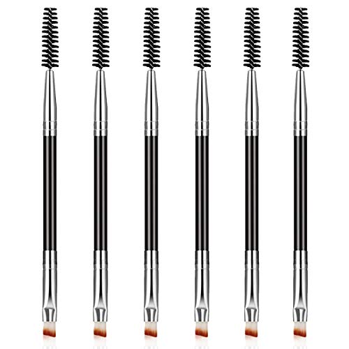 Acehome - 6 Pcs Premium Quality Makeup Eyebrow Brush Double Handle Spoolie Angled Brush Eye Comb Eyeliner Brush - Precision Flat Definer Small Shader, for Gel Cream Brow Powders Waxes and Blends