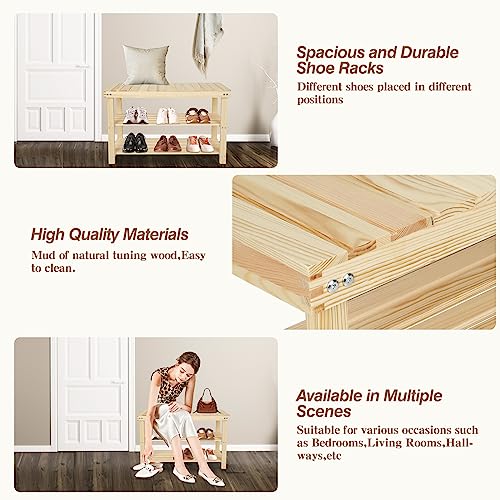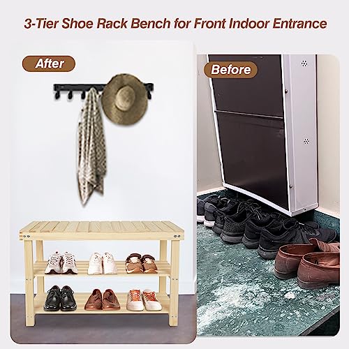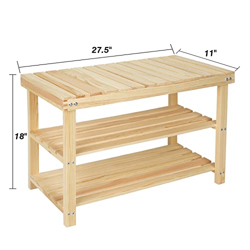 Acehome - Shoe Rack Bench, 3 Tier Entryway Shoe Rack with Seat, 27.5 Inch Shoe Bench with Storage, Wood Shoe Organizer, Storage Shoe Shelf, Storage Bench for Entryway, Bathroom, Hallway, Natural