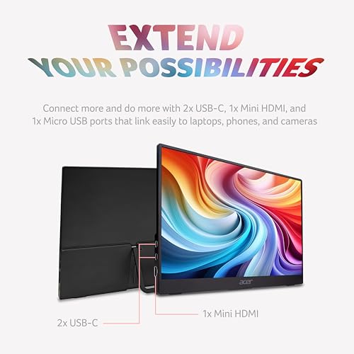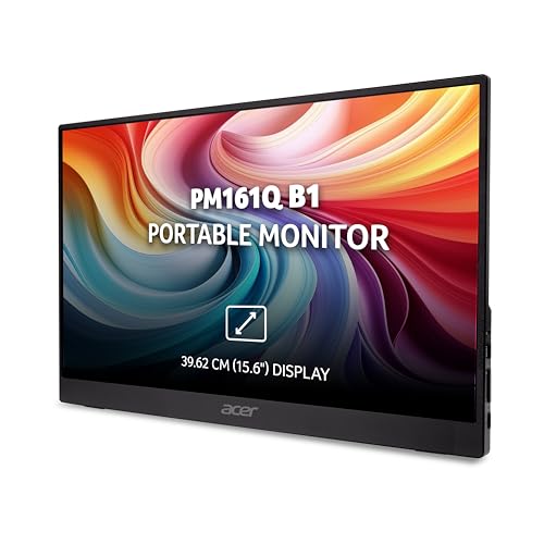 acer - Acer PM161Q B1 15.6 Inch Full HD Portable Monitor (1920×1080) | IPS Panel | 2 x USB Type-C & HDMI | 4 ms | Adaptive-Sync | Ultra-Slim 700 g | Built-in Speakers | Ideal for Laptop, Phone & Travel Use