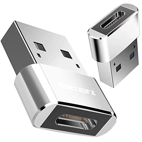 Acessorz - USB C to USB Male Adapter, [2-Pack] Mini Hi-speed USB Female (Type-C) to USB 2.0 Male (Type-A) Fast Charging & Data Sync OTG Adapter Connector Converter - Pack of 2 (Silver)