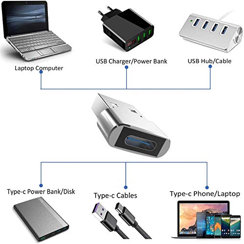 - ❤【Durable and Safe】: Top quality design and metal aluminium materials to ensure reliability and provide superspeed charging and transferring. This usb c to usb adaptor has up to 480 Mbps data transfer speed,premium 56KΩ pull-up resistor built in to ensure charging safe and high speed. Comes with aluminum cover to protect metal connector.