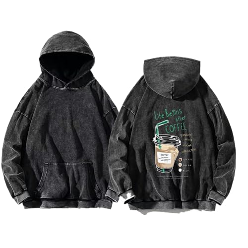 Generic - acid wash gray oversize Youth hoodie back art over size TEXT job work 16 coffee