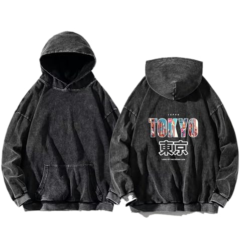 Generic - سويت شيرت بغطاء للرأس كبير الحجم للشباب بتأثير غسيل حمضي بمقاس كبير مطبوع عليه عبارة وقهوة للعمل، tokyo 21