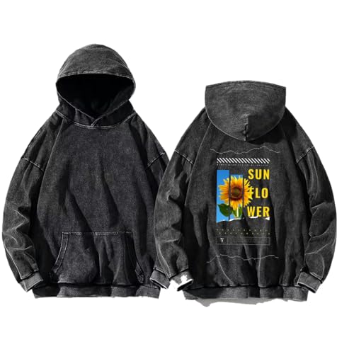 Generic - acid wash gray oversize Youth hoodie back art over size TEXT job work 38 sunflower
