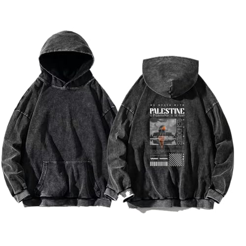 Generic - سويت شيرت بغطاء راس كبير الحجم للشباب من اسيد واش جراي مقاس اكبر من نص العمل 7 باليستين