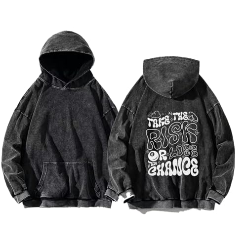 Generic - acid wash gray oversize Youth hoodie back art over size TEXT job work 96 take the risk or lose the chance