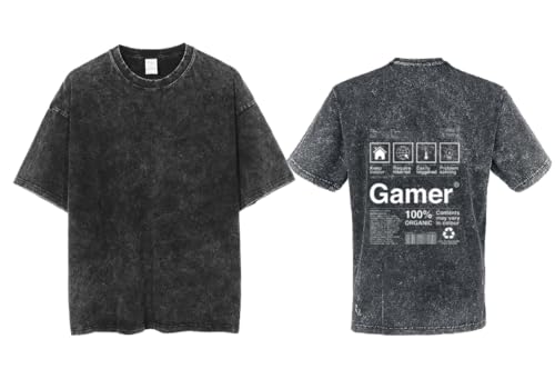 Generic - acid wash gray oversize Youth t-shirt back art over size TEXT job work 38 gamer