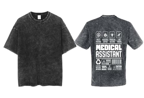 Generic - acid wash gray oversize Youth t-shirt back art over size TEXT job work 46 medical assistant