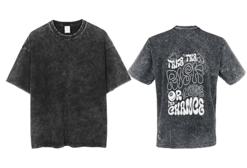 Generic - acid wash gray oversize Youth t-shirt back art over size TEXT job work 53 take the risk or lose the chance