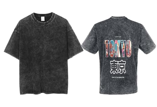 Generic - acid wash gray oversize Youth t-shirt back art over size TEXT job work 76 tokyo