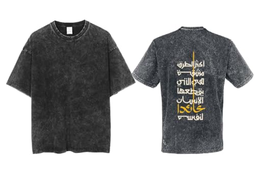 Generic - تي شيرت شبابي كبير الحجم بلون رمادي من اسيد ووش مقاس اكبر من TEXT للعمل في العمل 83 (اكثر الطرق مشقه هي التي يقطعها الانسان عائدا لنفسه)
