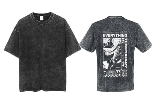 Generic - acid wash gray oversize Youth t-shirt back art over size TEXT job work 86 everything is temporary