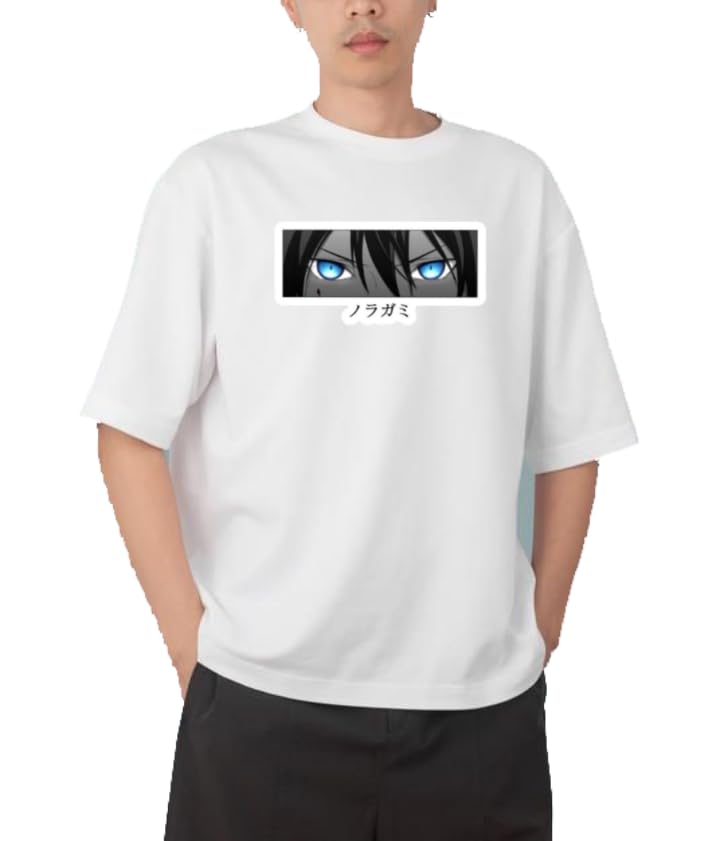Generic - تيشرت شبابي بقصة واسعة بتأثير الغسيل الحمضي الرمادي، بطبعة بيضاء لأنمي نوراجامي 5