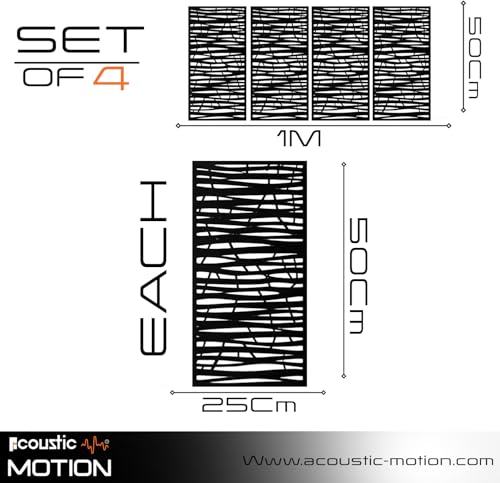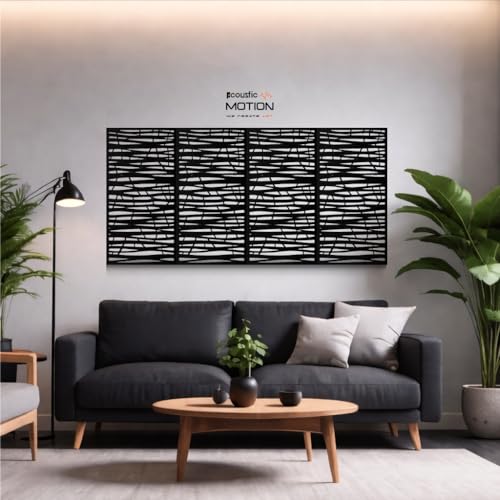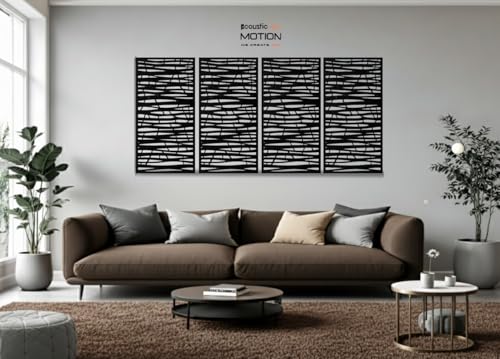 Acoustic Motion - ACOUSTIC MOTION® Wooden MDF Wall Art Decor Panels, AXIS Design with Double-Face Tape, Modern Black Wall Hanging for Home, Living Room, Bedroom, Office & Hotel, 25×50×0.5 cm, 4-Piece Set
