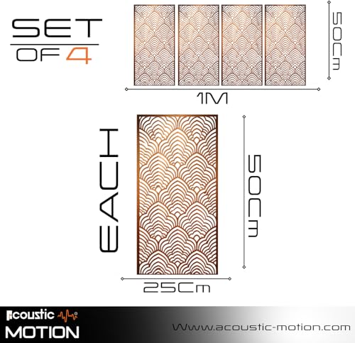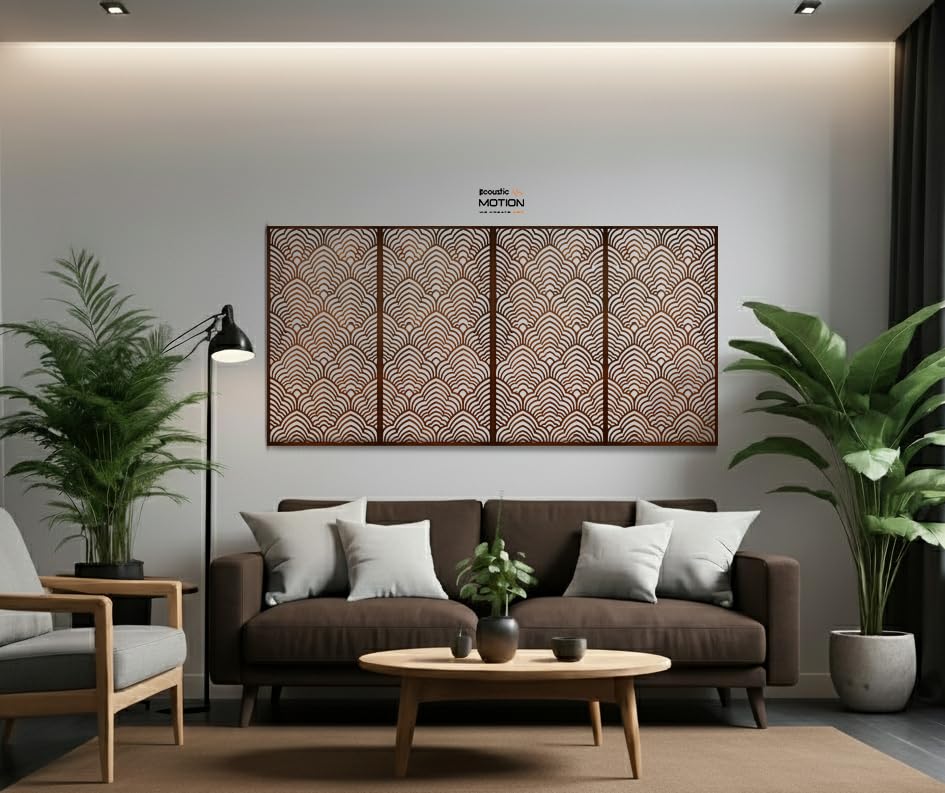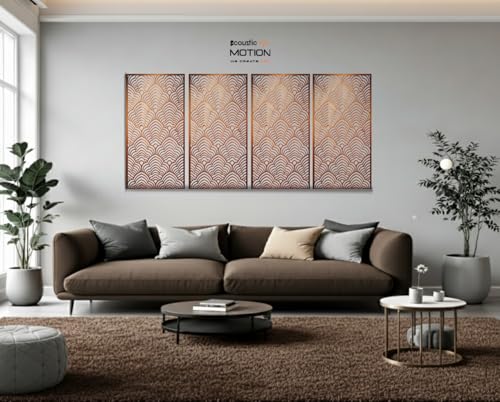 Acoustic Motion - ACOUSTIC MOTION® Wooden MDF Wall Art Decor Panels, CALMWAVE Design with Double-Face Tape, Modern Brown Wall Hanging for Home, Living Room, Bedroom, Office & Hotel, 25×50×0.5 cm, 4-Piece Set