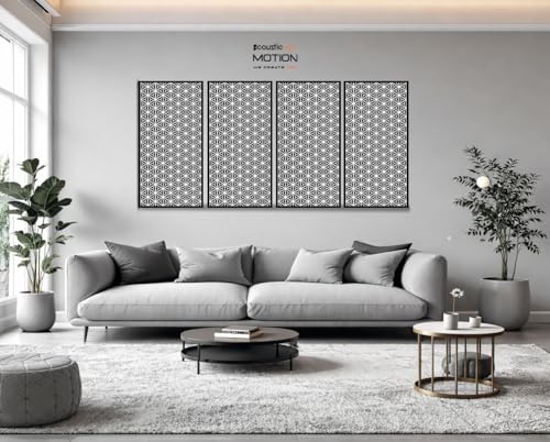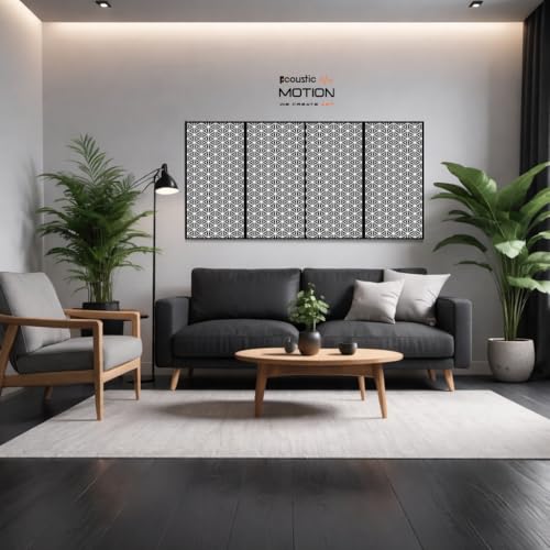 Acoustic Motion - ACOUSTIC MOTION® Wooden MDF Wall Art Decor Panels, GEOTRI Design with Double-Face Tape, Modern Black Wall Hanging for Home, Living Room, Bedroom, Office & Hotel, 25×50×0.5 cm, 4-Piece Set