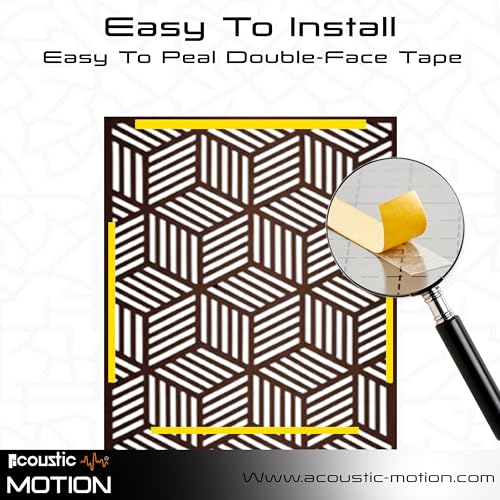 Acoustic Motion - اكوستيك موشن® لوحات فنية جدارية خشبية من خشب ام دي اف، تصميم ايزوهيكس مع شريط مزدوج الوجه، تعلق على الحائط بلون بني حديث للمنزل وغرفة المعيشة وغرفة النوم والمكتب والفندق، 25 × 50 × 0.5 سم، مجموعة من 4
