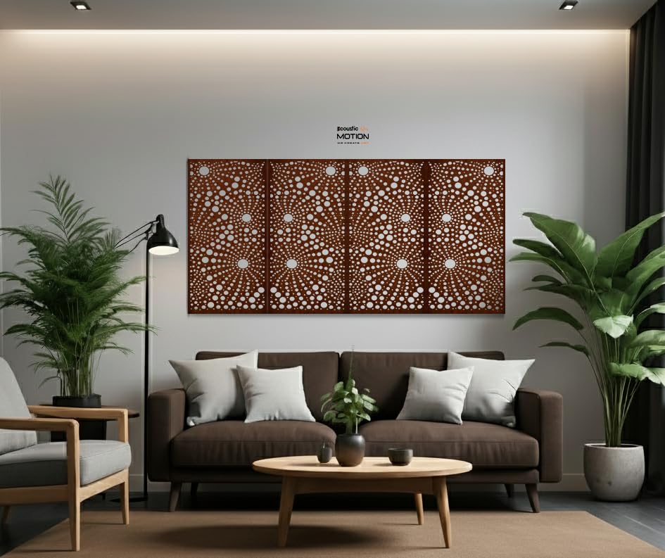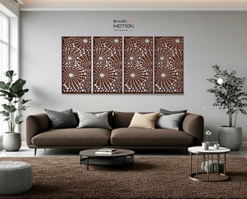 Acoustic Motion - ACOUSTIC MOTION® Wooden MDF Wall Art Decor Panels, NEXUS Design with Double-Face Tape, Modern Brown Wall Hanging for Home, Living Room, Bedroom, Office & Hotel, 25×50×0.5 cm, 4-Piece Set
