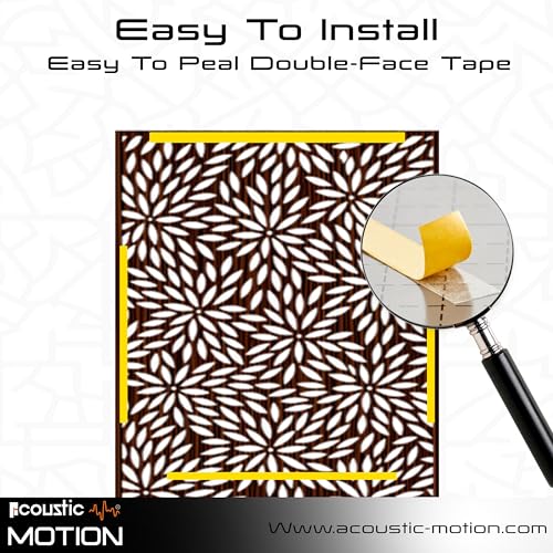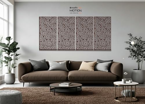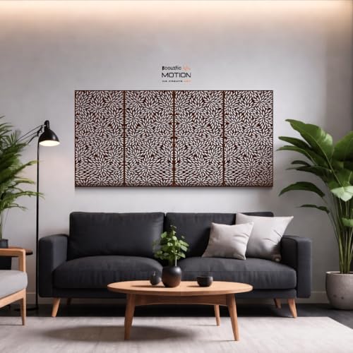 Acoustic Motion - اكوستيك موشن® لوحات فنية جدارية خشبية من خشب ام دي اف، تصميم روزا مع شريط مزدوج الوجه، تعلق على الحائط باللون البني الحديث للمنزل وغرفة المعيشة وغرفة النوم والمكتب والفندق، 25×50×0.5 سم، مجموعة من 4