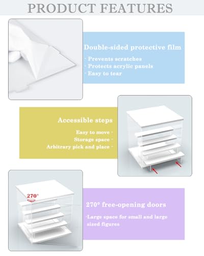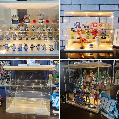 ACRLIE - 3-Step Acrylic Display Case with White Base, Collectibles Display Shelf, Dustproof Protection Showcase