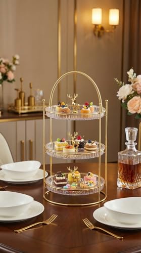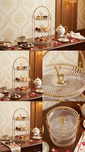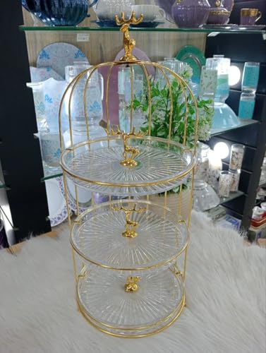 Generic - Acrylic 3 Tier Cake Stand Cage with Gold Deer Ornament