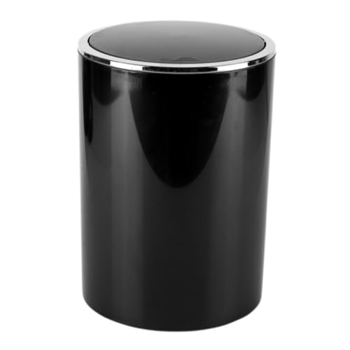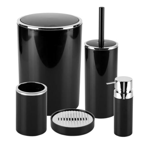 Generic - مجموعة إكسسوارات حمام اكريليك، 5 قطع (كوب حامل فرشاة الأسنان، سلة مهملات 6 لتر، موزع صابون لوشن (300 مل)، صبانة، فرشاة تواليت) حلقة فضية (لون أسود)