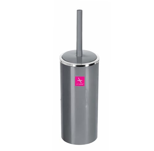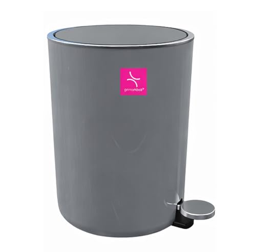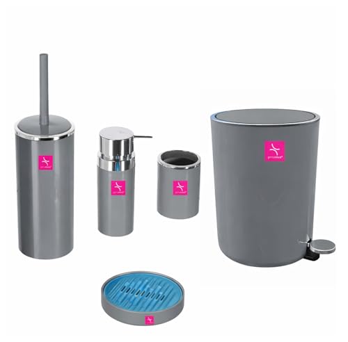 Generic - مجموعة ملحقات حمام اكريليك (سلة مهملات سعة 6 لتر - موزع صابون سائل - حامل صابون - فرشاة مرحاض - حامل فرشاة اسنان ومعجون الأسنان) - 5 قطع باللون الرمادي/الفضي
