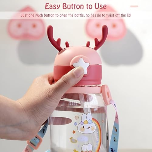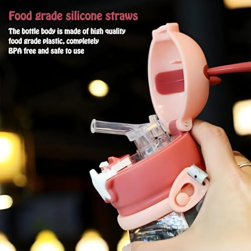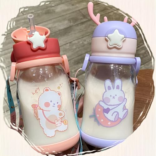 - Equipped with a wide nylon shoulder strap that is adjustable and detachable, this kid-friendly water bottle can be comfortably carried by hand or worn over the shoulder, freeing children's hands and making it ideal for school, outdoor activities, or travel with a kawaii aesthetic that enhances portability.