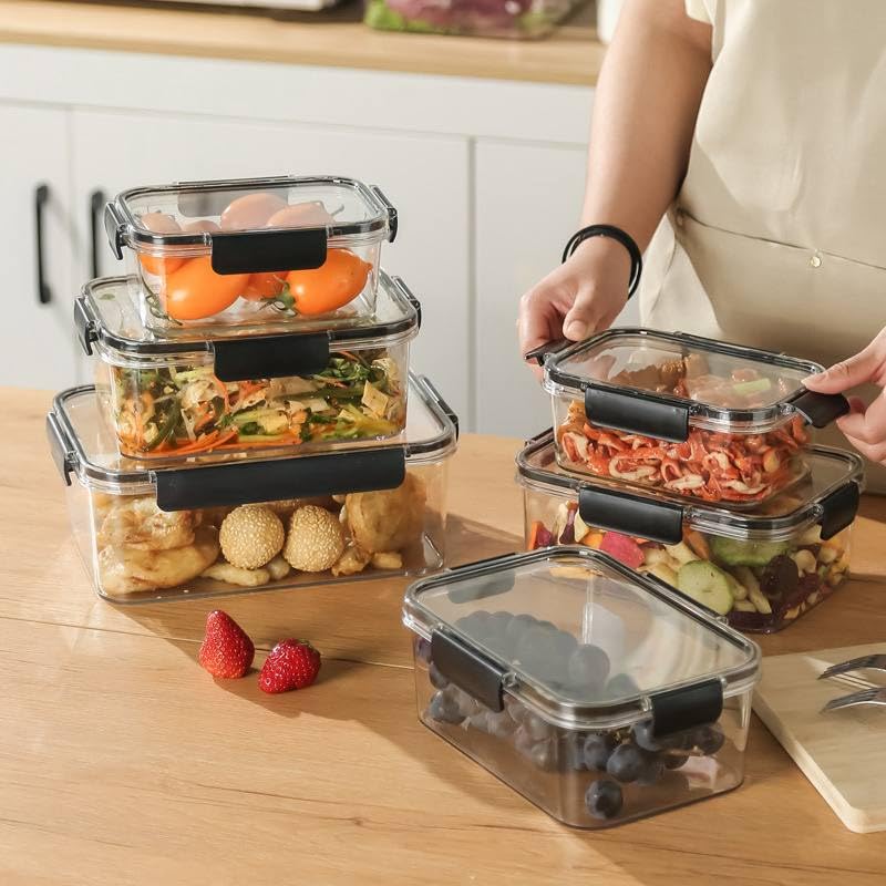 Generic - وعاء أكريليك 3*1 بغطاء محكم ومانع للتسرب، مقاسات مختلفة، بتصميم شيك. (صغير 560 مل، وسط 960 مل، كبير 1800 مل). - من جينيريك