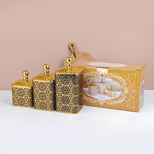 Generic - Acrylic Candy Jar Set - Elegant Gold Color, 3 Pieces with Tight Lids for Elegant Candy Storage or Gifts