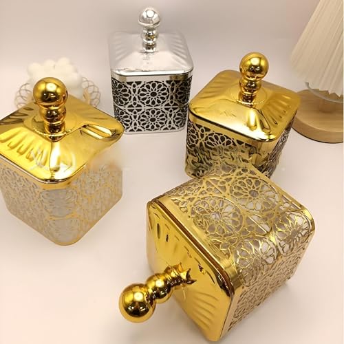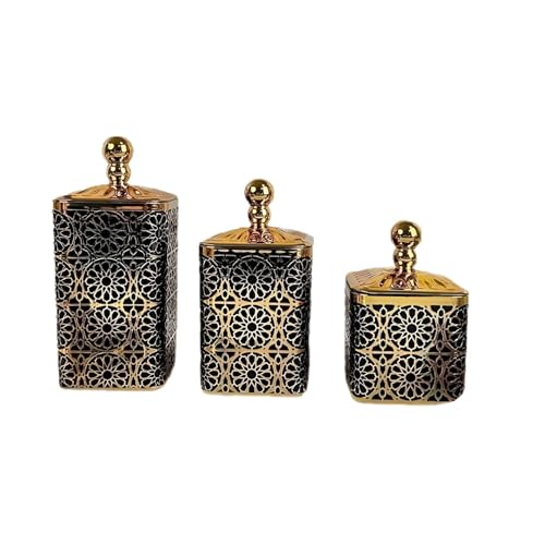 - Elevate your dessert presentation with a luxurious set of three gold-colored acrylic jars that add a touch of elegance to any setting, making your sweets look more enticing and sophisticated.