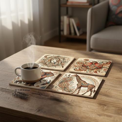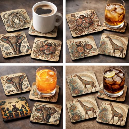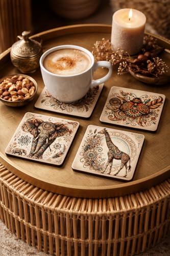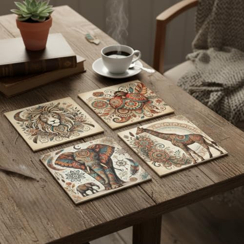 Generic - قاعدة أكواب أكريليك بتصميم فني لحيوانات بنمط بوهو، قواعد أكواب شرب زينة شفافة من الكريستال، مقاومة للحرارة ومضادة للانزلاق، واقي طاولة عصري للمنزل والمكتب،9 سم (مجموعة من 4 قطع)