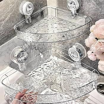 Generic - منظم حمام زاوية أكريليك – رف عملي لتخزين مستلزمات الحمام والأدوات الشخصية بشكل مرتب تصميم شفاف مقاوم للماء S