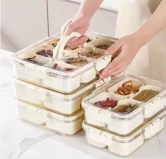 Generic - Acrylic Divided Refrigerator Box 8 Compartments – Spice Organizer & Keep Small Vegetables – Practical Design with Airtight Lid