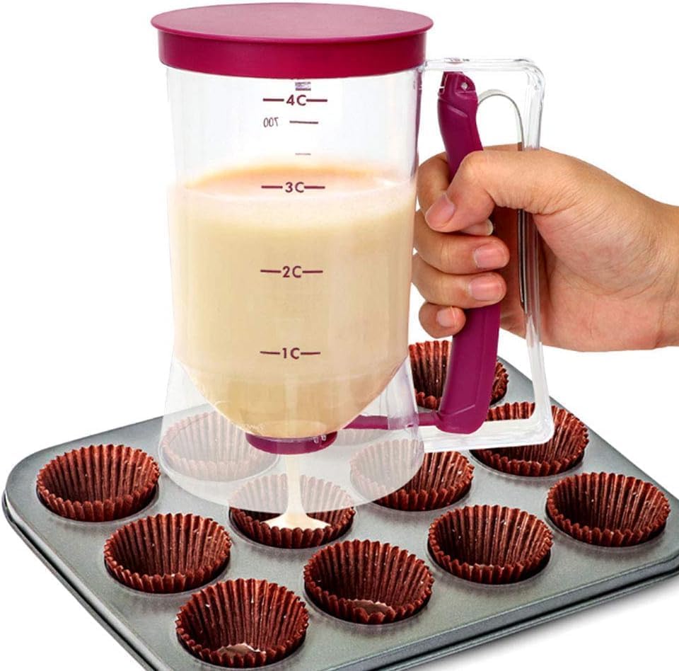 - ✅【مثالي لمختلف أنواع الحلويات】يعمل الموزّع على تسهيل تحضير البان كيك والكب كيك والوافل والعجائن الأخرى بسهولة وسرعة، مع ضمان توزيع متساوٍ وجميل في كل مرة، ليتيح لك الحصول على نتائج متقنة دون فوضى، ويجعل تجربة الطهي ممتعة واحترافية سواء للمبتدئين أو المحترفين. 🧁